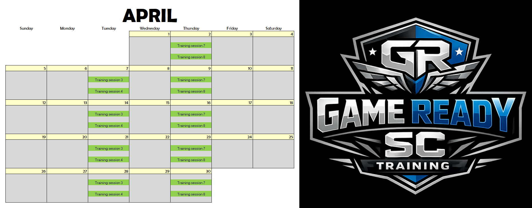 GRSC Training Session Calendar